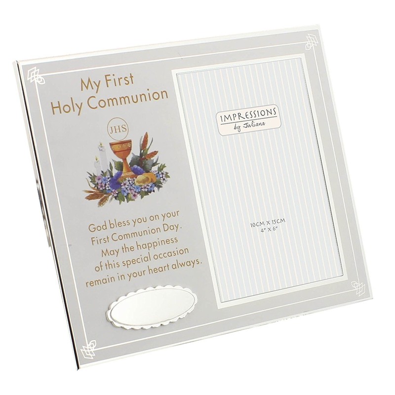 - Juliana Silver Paated 1st Communion Frame 4" x 6" With Engraving Plate