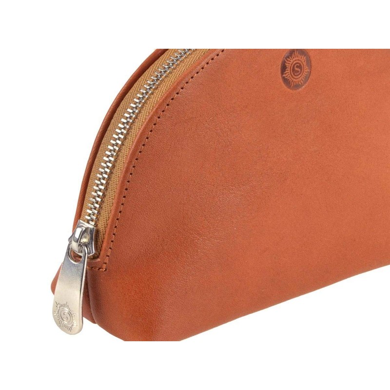 Julier Natural Leather Inner Pocket Cosmetic Bag with Zip