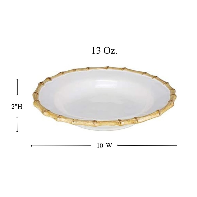 - SOPHISTICATED DESIGN: Bamboo Natural Pasta/Soup Bowl has a sophisticated and unique design. Made in Portugal and measures 10.0"W x 2.0"H x 10.0"L. 13oz capacity.