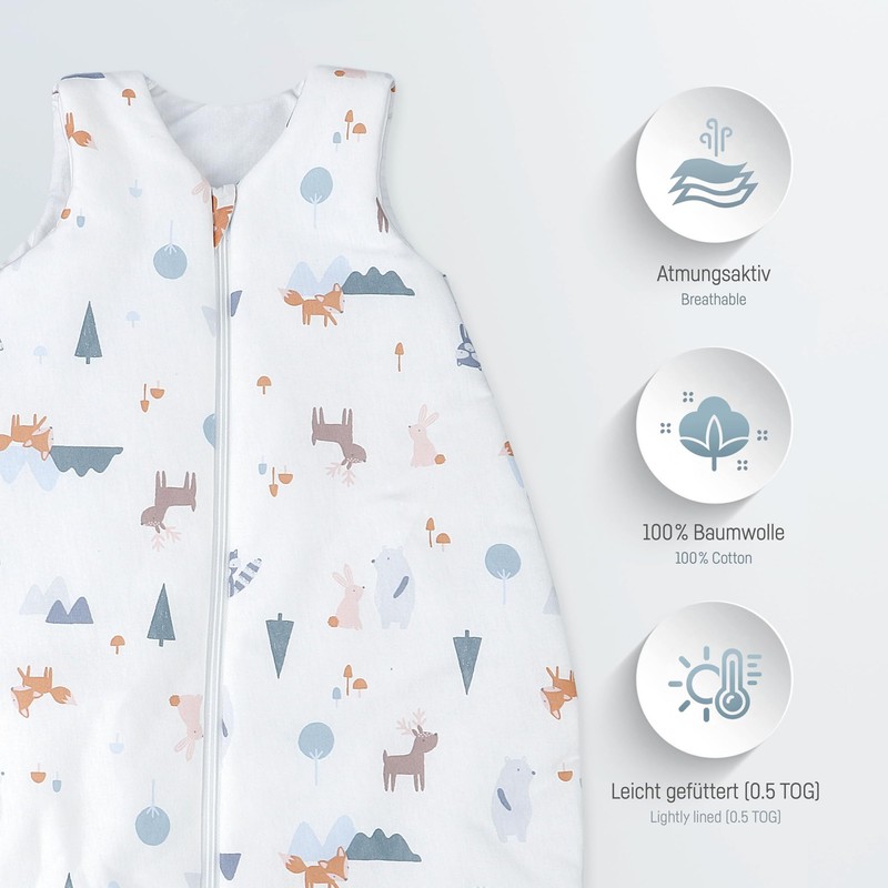 Julius Zöllner Baby Summer Sleeping Bag, Made from 100% Jersey Cotton, Size 74, Standard 100 by Oeko-Tex, Little Fox