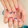 July 4th French Tip Press on Nails, Red Blue White Short Square Fake Nails, Independence Day Themed Acrylic Nails with Glue for Women Holiday Glossy Full Cover False Manicure Gift (24Pcs)