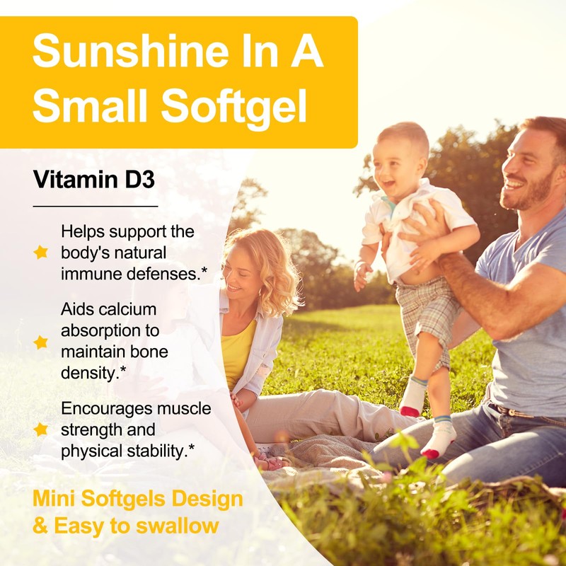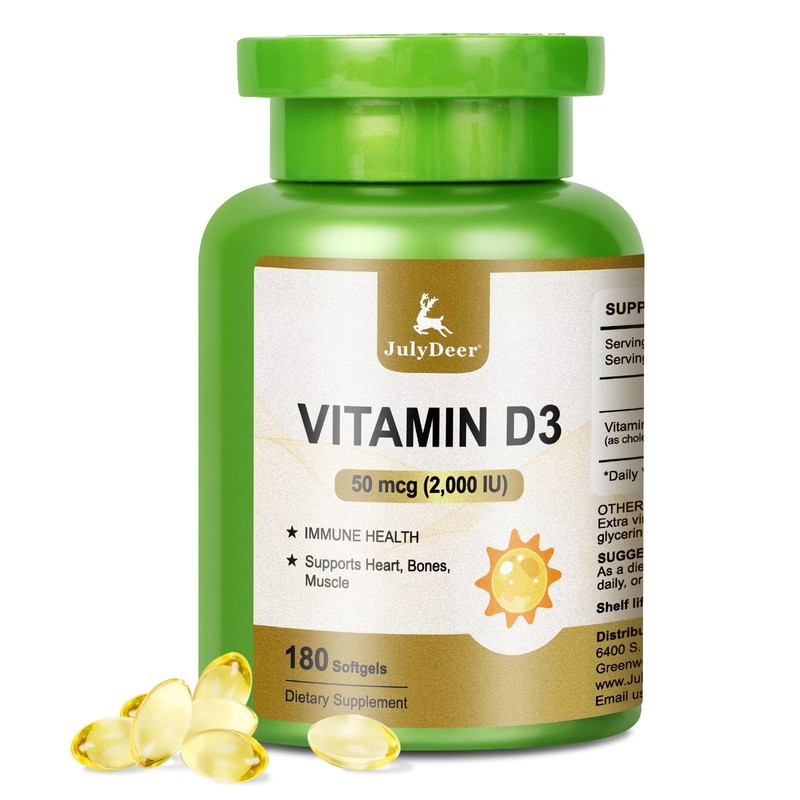 JulyDeer Vitamin D3 2000 IU (50 mcg) 180 Softgels | Supports Immune Health, Calcium Absorption & Bone Strength | Essential for Healthy Bones, Non-GMO, No-Gluten, 1 Serving Per Day for Daily Health