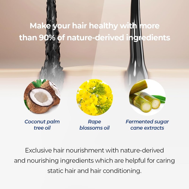 - ✨ Anti-Static + Gloss-Enhancing Formula Contains conditioning agents derived from fermented sugar cane that provide hydration while taming static and flyaways. Ideal for maintaining smoothness and manageability all day long.