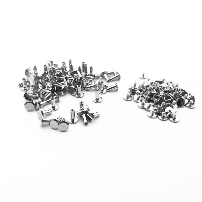 Julyun 50 Sets Metal Snap Rivets Chicago Screw 4MM Length,Slotted Cross Head Stud Nail Rivets, Chicago Button for DIY Planner, Leather Decoration, Bookbinding