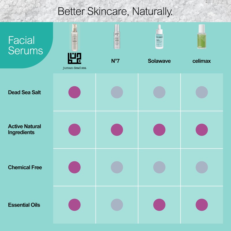 OUR PHILOSOPHY:At Juman, we believe you deserve the best that nature has to offer. That's why we bring you the rejuvenating power of Dead Sea minerals, carefully infused into our skincare formulations to nourish, hydrate, and revitalize your skin. Our mission is to help you experience the transformative benefits of this natural wonder, so you can enjoy a healthier, more radiant complexion every day.SUITABLE FOR ALL SKIN TYPES:Gentle yet effective, this water tonic spray is formulated to hydrate, soothe, and refresh without clogging pores or causing irritationmaking it perfect for dry, oily, sensitive, and combination skin alike.HOW TO USE:Wipe across the face, neck, and dcolletage (avoiding eye area) with cotton damped with the tonic. It can be used daily or when needed to purify the skin without drying it.SLS & PARABEN FREE:Our products are free from harmful ingredients, allowing you to enjoy a gentle, safe, and nourishing skincare experience without compromising on effectiveness.