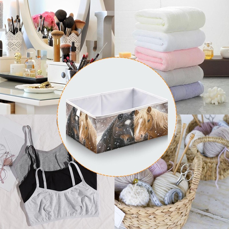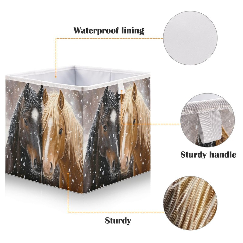 JUMBEAR Two Horse Storage Basket, Foldable Storage Basket, Toy Storage Box for Home, Shelf, Closet, 28 x 28 x 28 cm