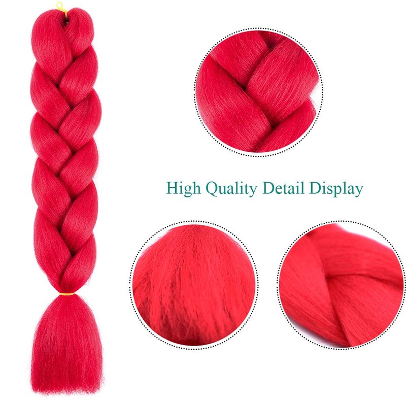 Jumbo Braiding Hair Extensions 5 Bundles Synthetic Hair Kanekalon Crochet Hair Box Braiding (Red)