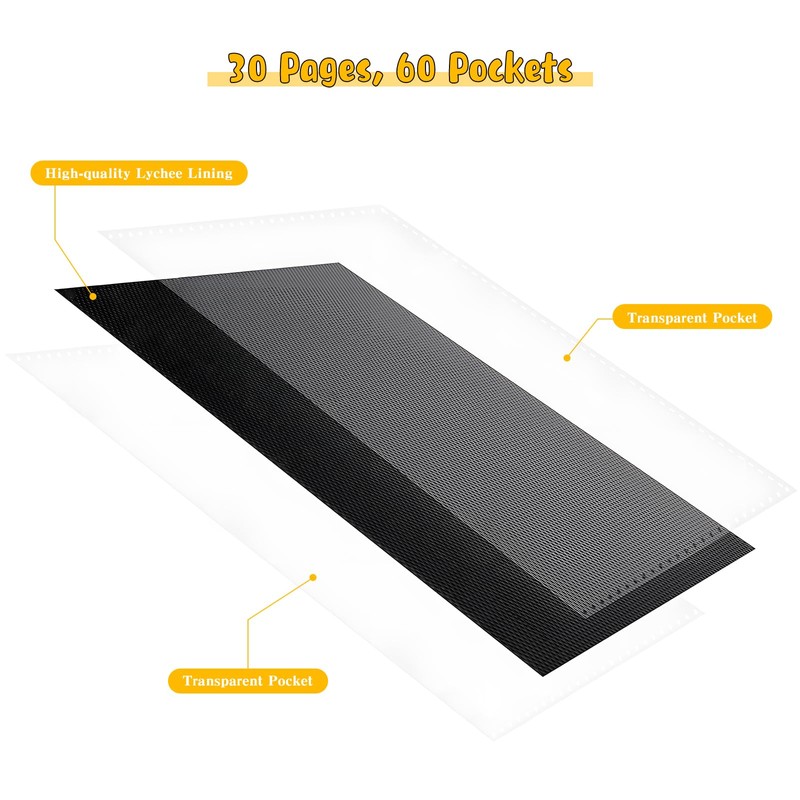 - Stable Card Storage:TCG binder Holds 60 XL jumbo cards with 30 double-sided pockets securely bound to the spine, featuring a ring-free design for added safety. Side-loading pockets keep cards securely in place, preventing spills