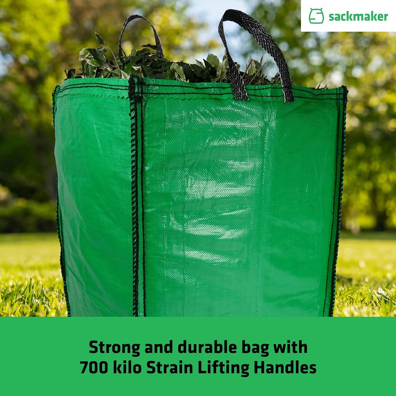 - DURABLE WASTE BAG – Our large garden waste sacks are made from a durable, thick industrial grade woven fabric with 700 kilo Strain lifting handles to take on most green waste, including sharp branches, heavy stones, wet grass etc. Coming in a pack of one, the garden bin bag will also stand up whilst in use, so there is no need for two sets of hands.