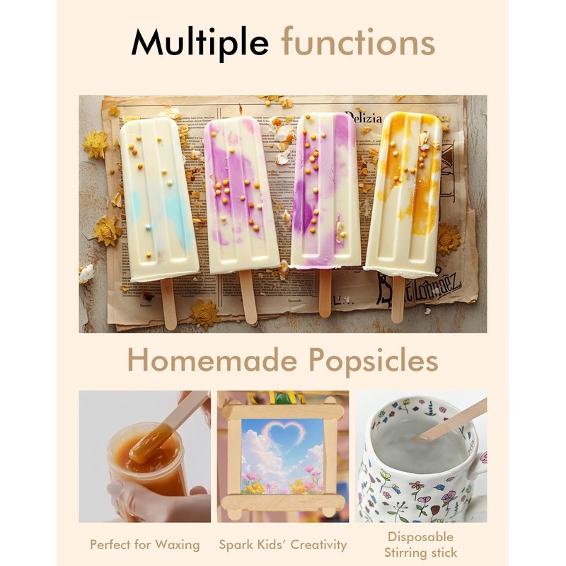 - Versatile Uses: Perfect for party crafts, home decor, waxing, and face masks, these wax sticks, jumbo popsicle sticks for crafts, and large craft sticks offer endless possibilities. Use these durable wooden sticks and tongue depressors to inspire creativity and design unique projects!