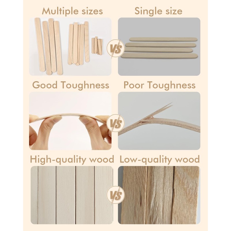 - Usage Tips: These thick popsicle sticks are easy to use, making crafting fun and simple. With popsicle sticks bulk, they’re perfect for DIY projects, waxing, and more. Enjoy creating with these versatile popsicle sticks for waxing, wood sticks for crafts, and wooden craft sticks!