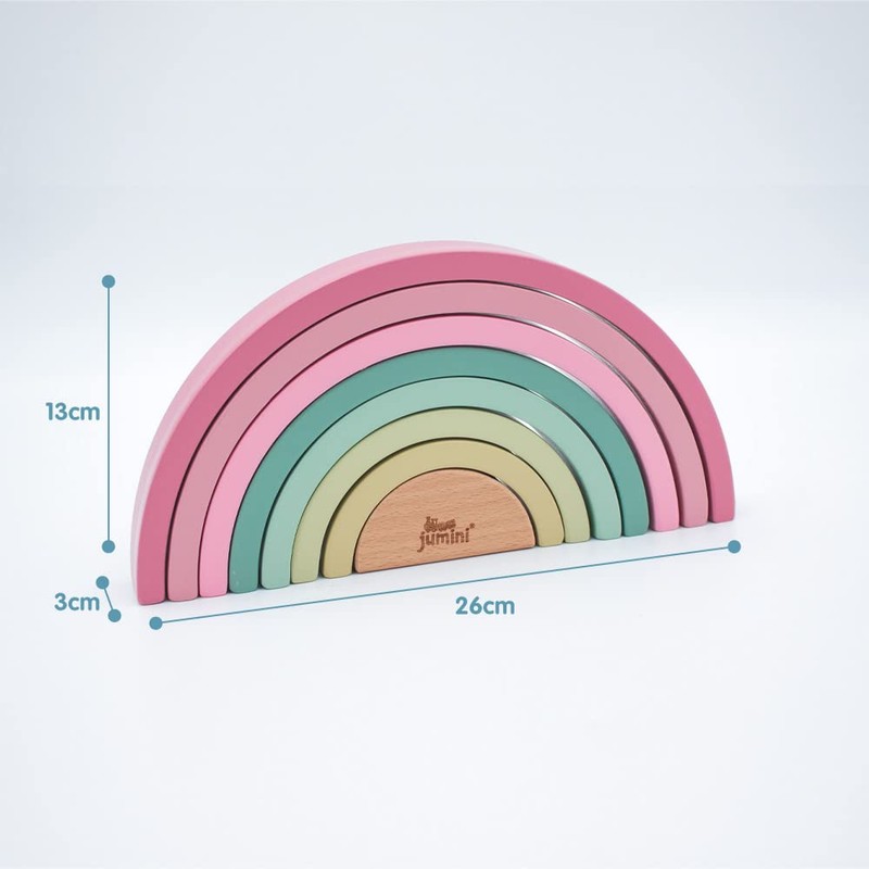 - jumini Wooden Stacking Toy Rainbow Building Blocks – pastel coloured, educational puzzle, geometric, arch toy, birthday gift, toy for children, 8 pieces Pink