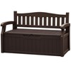 JUMMICO 80 Gallon Resin Outdoor Storage Bench, Large Deck Box with Armrest, Lockable & Waterproof for Garden, Home, Patio, Pools (Brown)