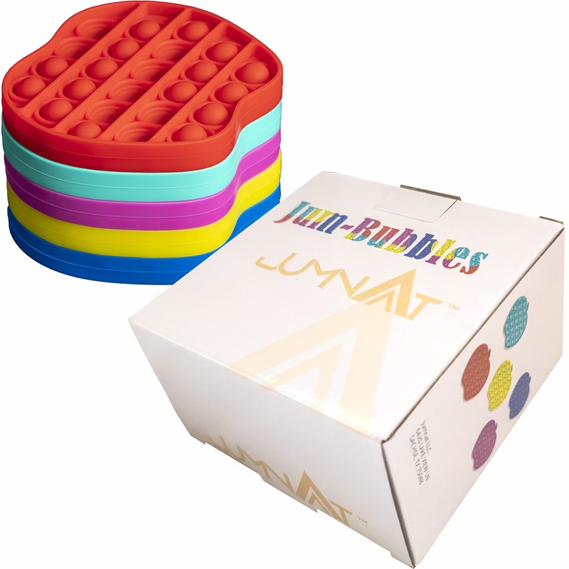 - 🍏Push Pop Jum-Bubbles - Bubble pop is a fidgets for stress reliever. push its pack comes in a five-pack push it pops with a multicolor bubble popper in the shape of a fruit. If you enjoy popping bubble wrap, this fidget toy with a fun distinct sound is an excellent eco-friendly bubble wrap.