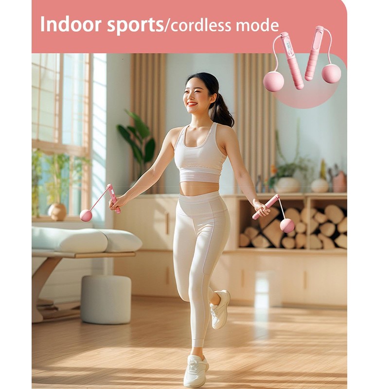 This Cordless Jump Rope helps you track your workout progress with real-time skipping and calorie count. Its adjustable weight and versatile design make it suitable for various exercise routines. The ergonomically designed handle ensures a comfortable grip.