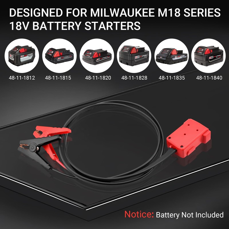 - Compatibilty: Designed for 18V Batteries, ensuring a secure connection. Batteries for a variety of vehicles, including cars, trucks, motorcycles and other devices that require additional current to start (Batter Not Included)