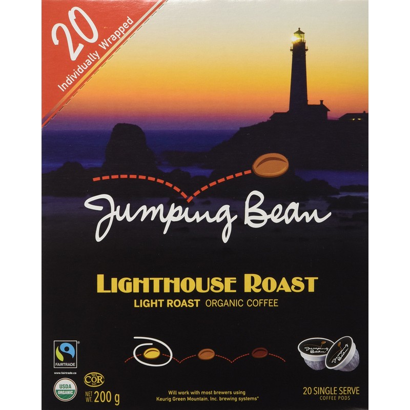 Jumping Bean Light Roast Fairtrade Organic 100% Compostable Coffee Pods - 20 Pack - Individually Wrapped, Lighthouse Roast, 20 Count