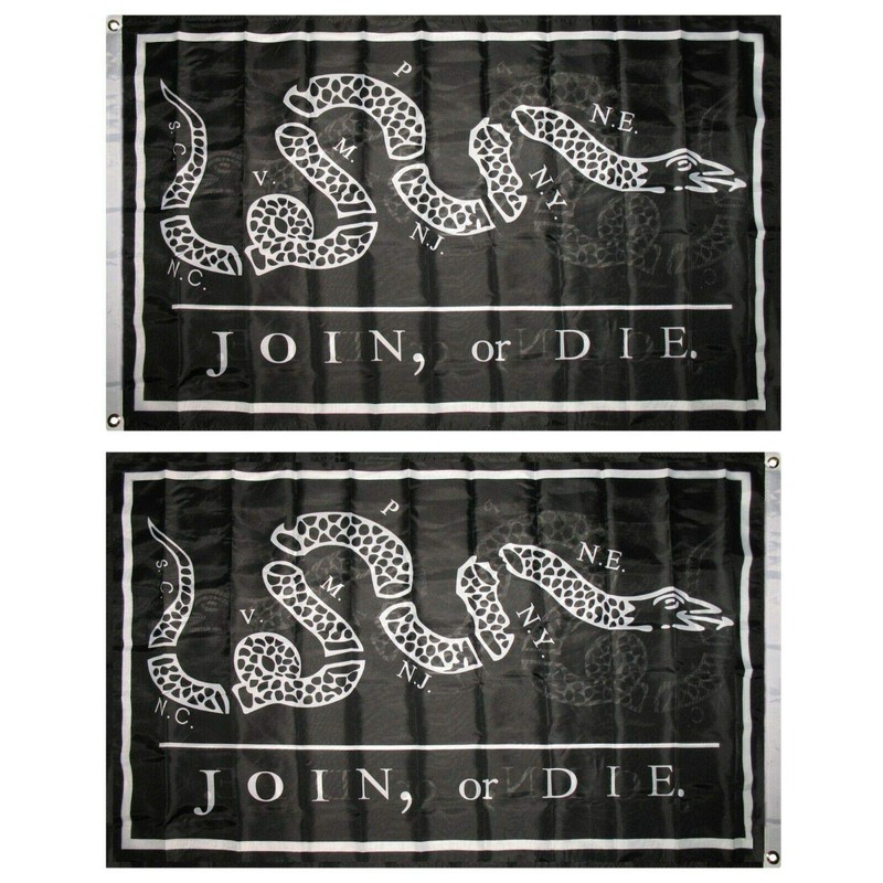 - 3x5 Black Benjamin Franklin Join or Die 2-ply poly Double Sided Flag 2 faced