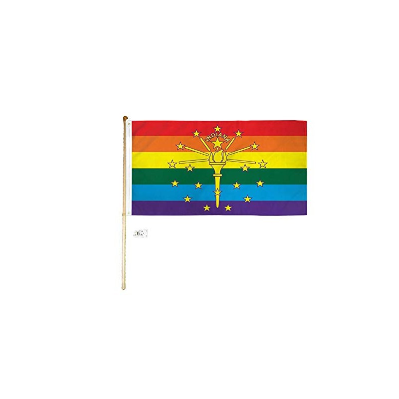 JumpingLight 5 Wood Flag Pole Kit Wall Mount Bracket with 3x5 Indiana Rainbow Polyester Flag - Quality Flags
