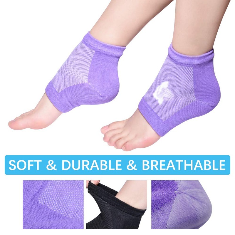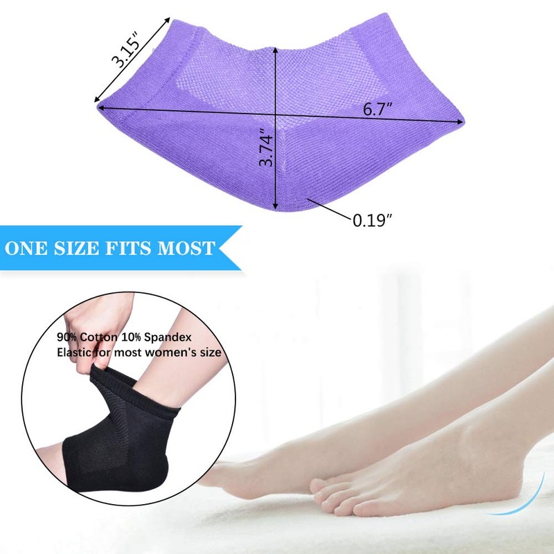 - Good design - This moisturizing socks are made with flexible cotton blend, inside the heels are fully covered with slippery gel. Soft yet stretchy, plus a toeless design allow your toes to breathe and keep cool.