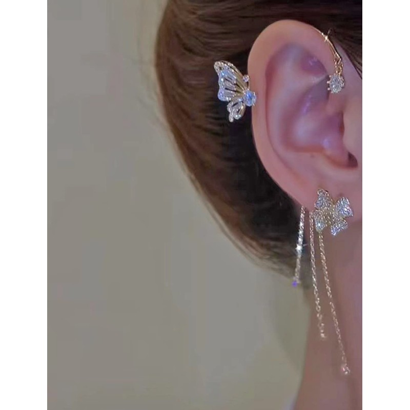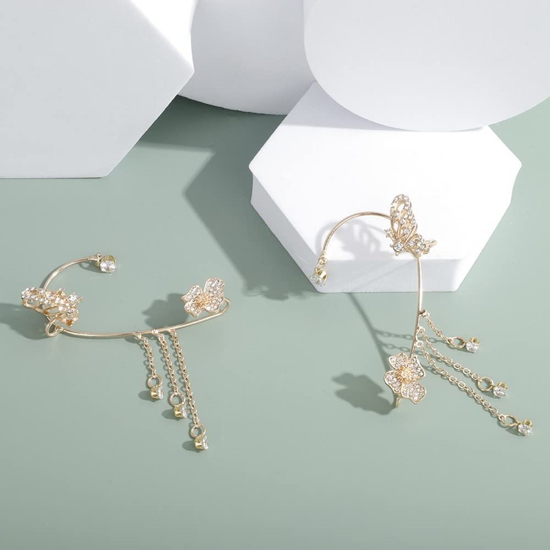 - You can enjoy the beauty and elegance with this sparkling butterfly ear cuff earrings even if you don't have pierced ears. The ear crawler is easy to put on and take off, also can be worn comfortably on ears all day long.