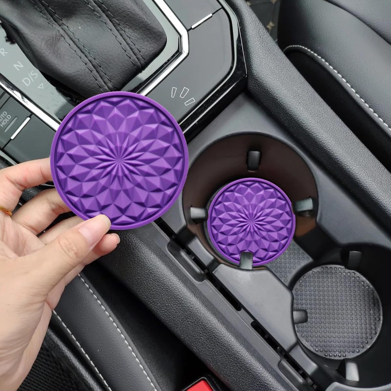 JUNAHAA Car Cup Coaster, Universal Automotive Waterproof Non-Slip Cup Holders Sift-Proof Spill Holder Car Interior Accessories 2 Pack Purple