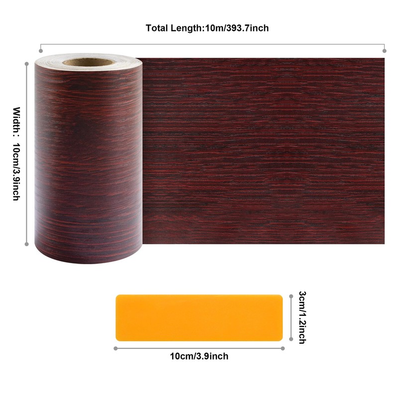 JUNART Wood Grain Repair Tape(10cm×1000cm), Self-Adhesive Waterproof Realistic Textured Repair Duct Tape for Tables, Baseboards, Doors, Windows, and Floors with Plastic Scraper(Red Rosewood)
