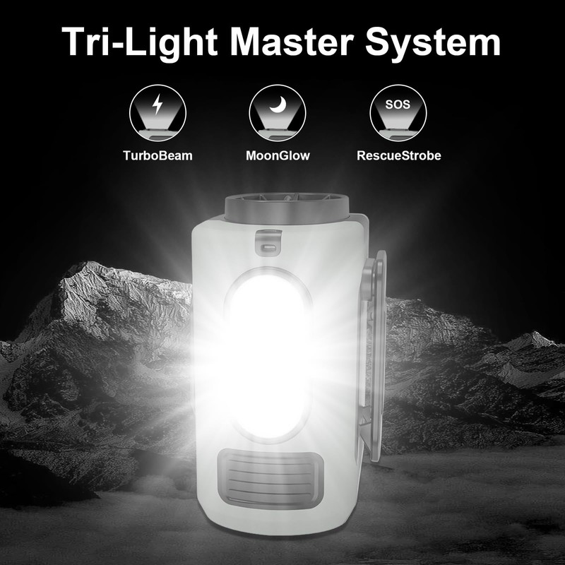 - 🔦 【Tri-Mode Super Beam】Strong light, soft glow, or emergency strobe – the portable waist fan’s LED dominates night hikes, worksites, or sudden outages.