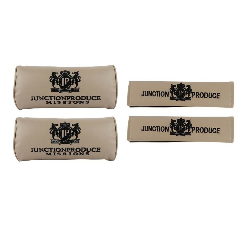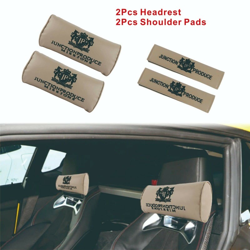 JUNCTION PRODUCE VIP Leather Beige Car Neck Pillow Headrest+Shoulder Pad COMBO SET