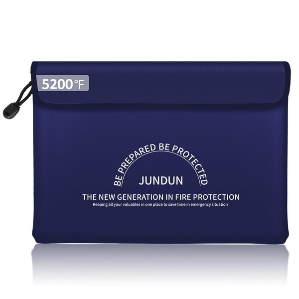 JUNDUN Fireproof Document Bag with 5200°F Heat Insulation, 36 x 26 cm Waterpr...