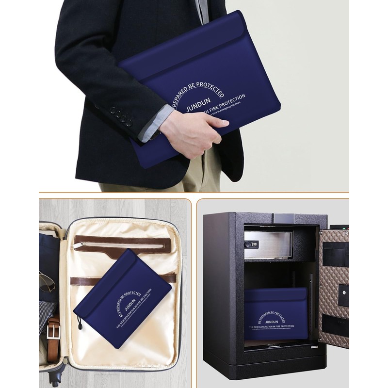 JUNDUN Fireproof Document Bag with 5200°F Heat Insulation, 36 x 26 cm Waterproof and Fireproof Wallet, 8 Layers Thickened Fire Protection Bag with Zip for Documents and Cash, Blue