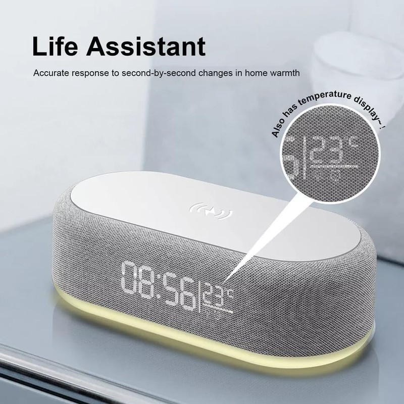 June Lily 4 in 1 Multi-Function Alarm Clock Temperature Display Wireless Charging for Smartphones Bedside Light (Black)