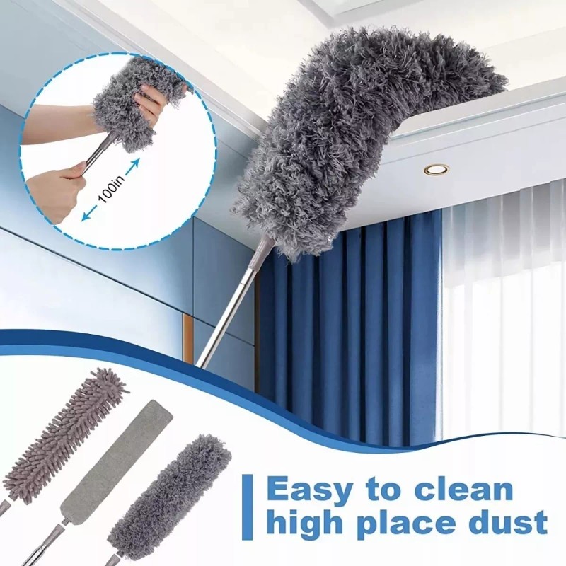 [Extra-Long Telescopic Dust Collector]High quality 250cm long stainless steel telescopic pole makes this dust collector easy to clean ceilings, ceiling fans, lamps, cobwebs, etc. We've also fitted a scratch-resistant soft rubber tip on top to ensure you can clean with complete confidence.