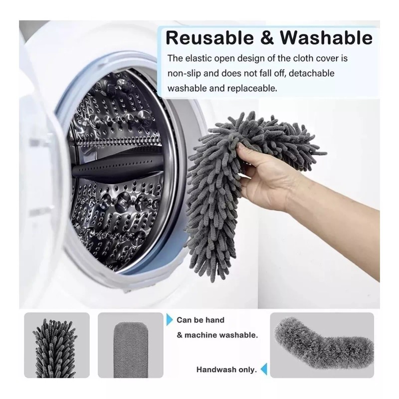 [Cabezal flexible] El cabezal de plumero de microfibra flexible es más conveniente que los plumeros ordinarios. El cable integrado en el cabezal de limpieza es resistente y se puede doblar hasta 360 . Puede doblarse y moldearse arbitrariamente (forma de S, forma de L, forma de O, etc.). Puede penetrar fácilmente en pequeños huecos para limpiar el polvo oculto.
