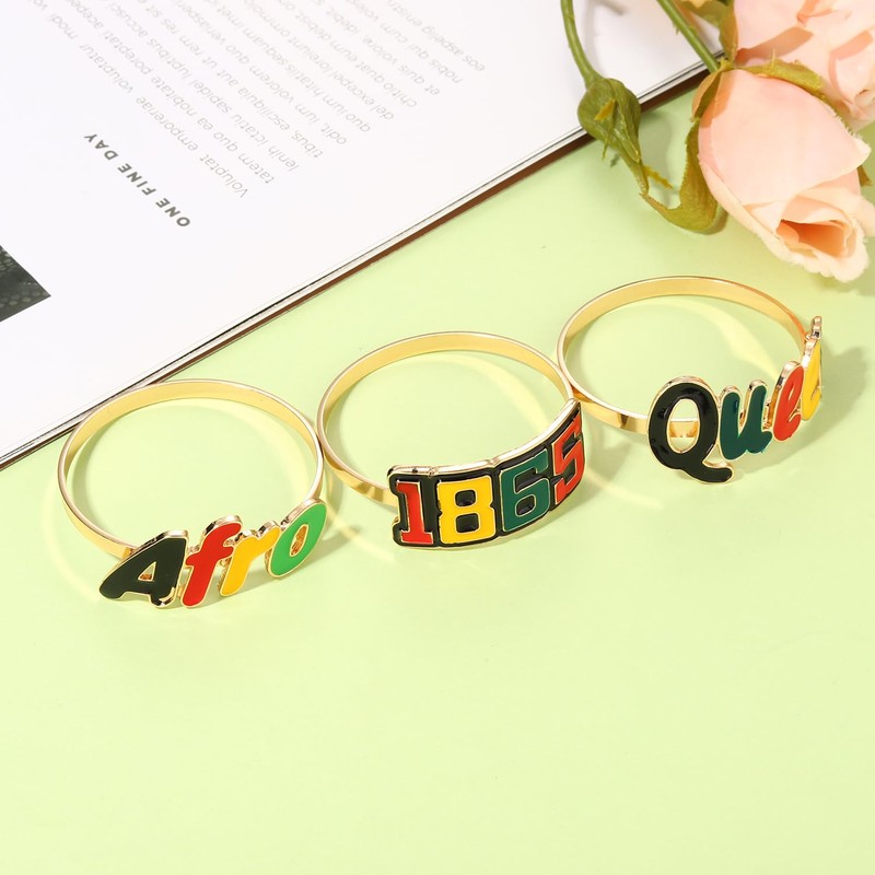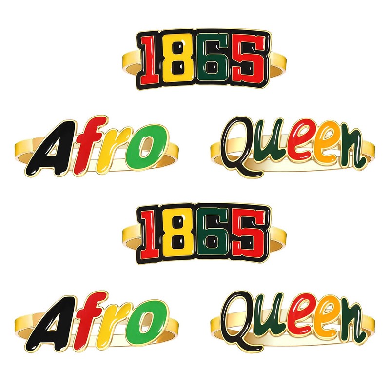 - ✔Juneteenth Napkin Rings: These Juneteenth napkin rings will make your table beaming with Black pride!! Designed with classic African theme color of red, green, yellow and black, feature a gold holder ring adorn with African map, black women, love heart, Afro, power fist charms, novel and eye catching adding a touch of sophistication to any table setting. Celebrate black freedom and show that black history matters for the culture with these Juneteenth napkin holder rings!