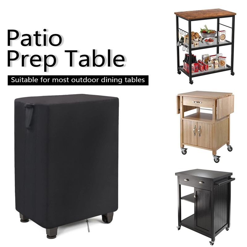 - Material: la funda de mesa está hecha de tela Oxford duradera, que es resistente a la decoloración, resistente al agua, resistente a los rayos UV; puede brindar una buena protección a tu carrito de cocina/mesa de parrilla/mesa de horno de pizza/mesa de cocina/carrito de barbacoa/mesa de preparación/carrito refrigerador y otros muebles