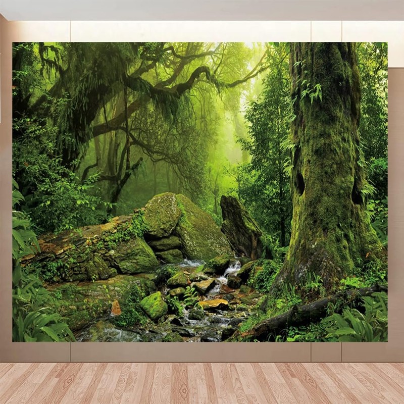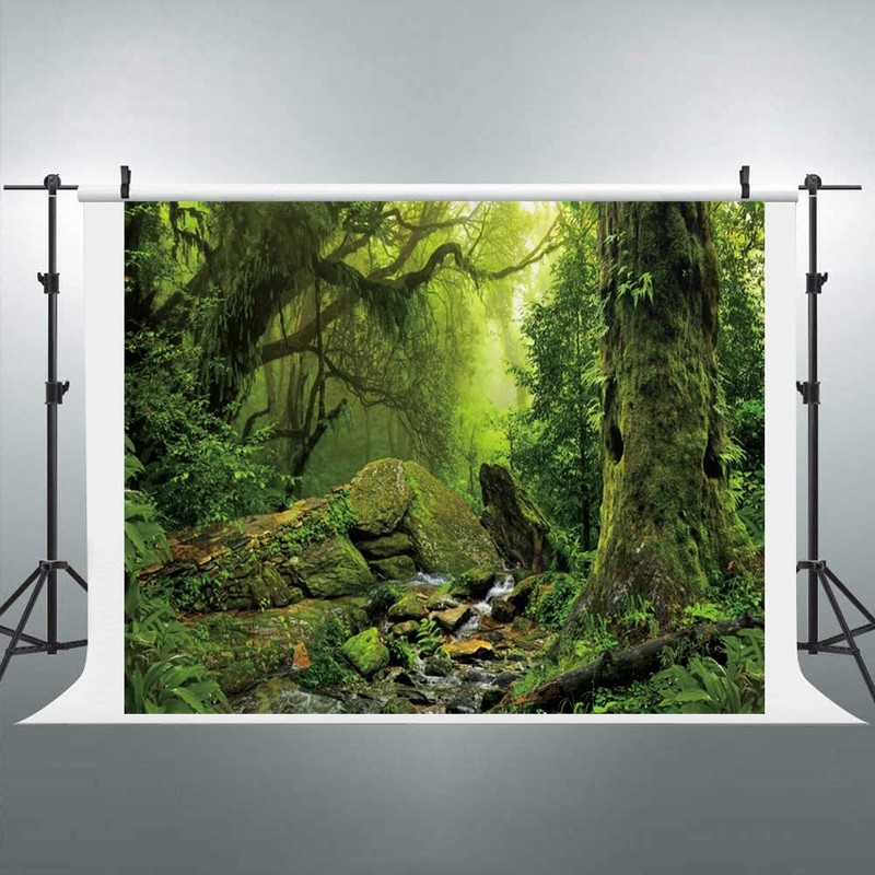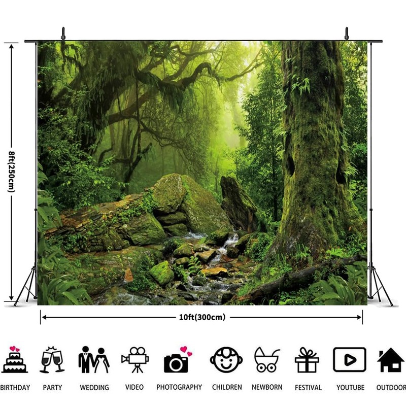 Jungle Forest Backdrop 10x8ft Tropical Rainforest Backdrops for Photography Fairytale Misty Deep Green Trees Nature Scenery Photography Background Camping Boy Adventure Photo Studio Props