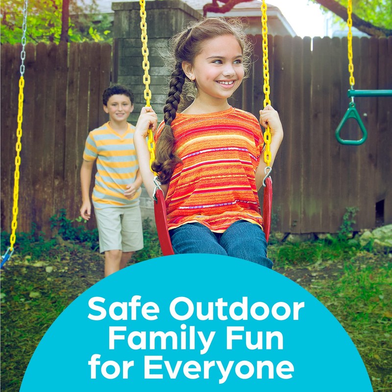 - SAFE FOR KIDS & ADULTS: The kids swing set kit has plastic coated chains designed to be pinch-free and stable. No pinched fingers and no hair snags or tangles. Holds up to 300 lbs. Adults can join the fun too!