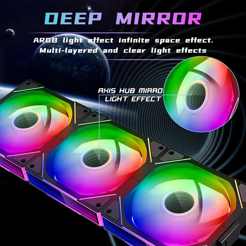 Jungle Leopard Interstellar V1 120mm Case Fan, Infinity Mirror Module Daisy-Chain 5V ARGB PWM PC Fan Triple Pack Suitable for Computer Case & CPU Cooling(Black-3 Pack)