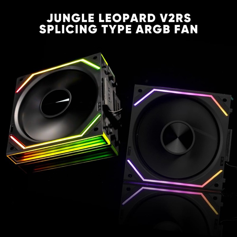 • The latest Jungle Leopard FAN JM-V2 RS 120 case fan is different from the first generation, its lighting is more beautiful and soft, and we have upgraded its cable (with nylon mesh security, more durable).In terms of side infinity mirror splicing, the latest generation of JM-V2 RS has a stronger overall lighting effect.And it has upgraded its fan design to provide more airflow to your case with the same noise