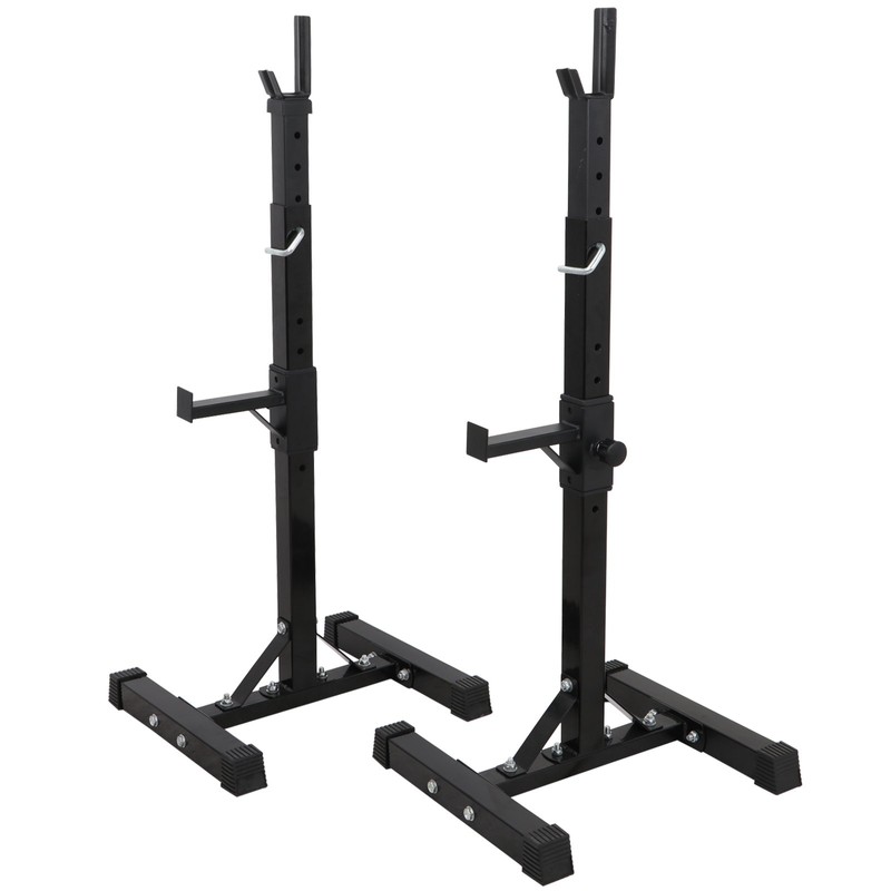 - 【Height Adjustable】The barbell rack's adjustable height ranges from 41 to 66 inch, suitable for a variety of heights, and adjustable spotters for your safety with 14 positions