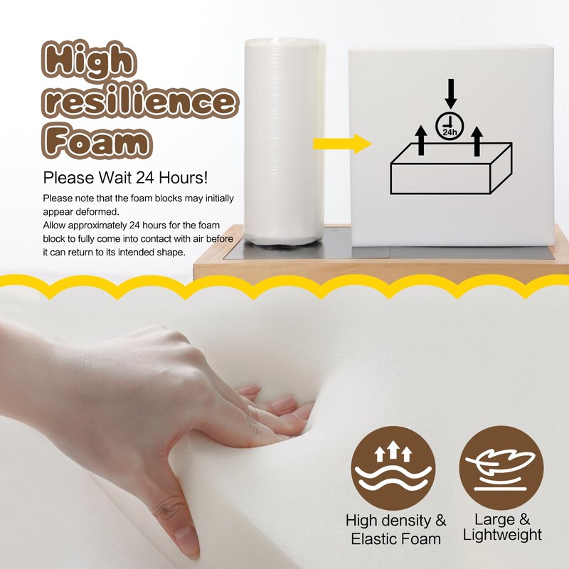 Due to vacuum compression packaging for shipping, foam blocks may take 24-72 hours to fully expand and regain their shape.