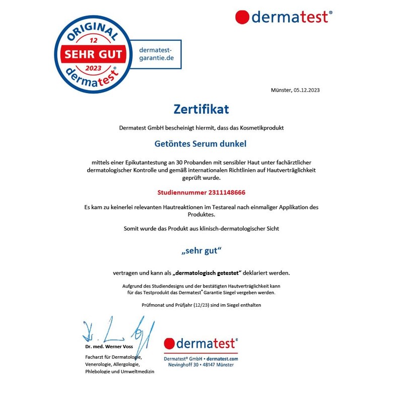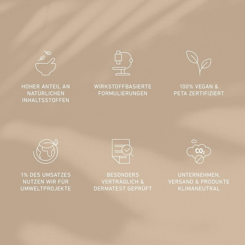 - Compatibility: All our products are explicitly tested by Dermatest on sensitive skin and bear the "Very Good" award. We deliberately do not use irritating preservatives, drying surfactants, drying alcohols and PEGs. This allows us to provide appropriate care for every skin need, even with allergic skin.