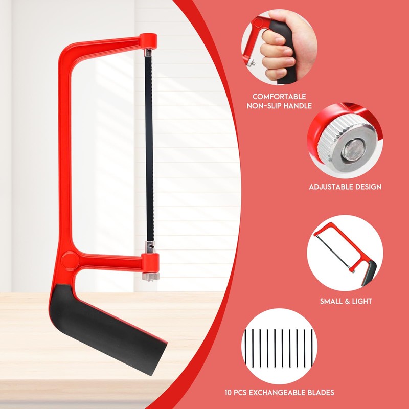 - 【11Pcs Hacksaw Set】Including one red mini hacksaw and ten saw blades, long-lasting and easy to regularly replace saw blades,providing you with sufficient blades to meet your daily use requirements