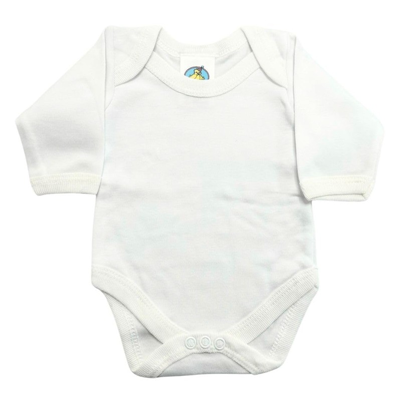 Junior Joy Baby Bodysuits – White Cotton for 12–18 Months | Long Sleeve, Envelope Neck, Easy Nappy Change