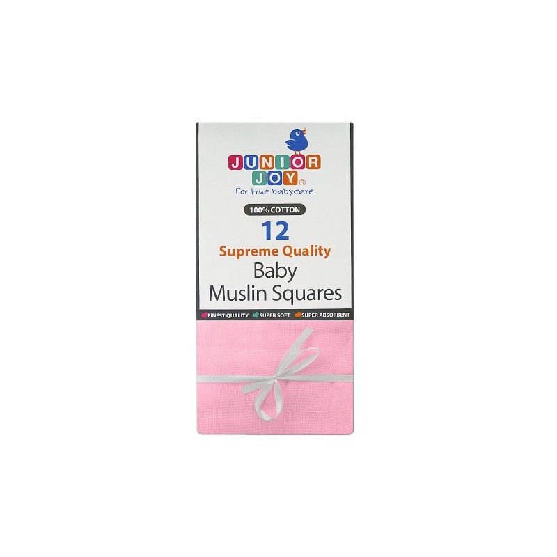 Junior Joy Baby Muslin Squares (12 Pieces, Pink)