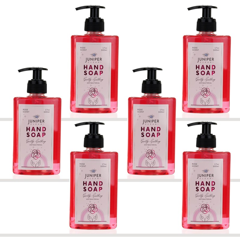 Juniper CLEAN, Antibacterial Hand Soap with Pump, Rose Scent, Liquid Hand Soap 17 Fl Oz (Pack of 6)