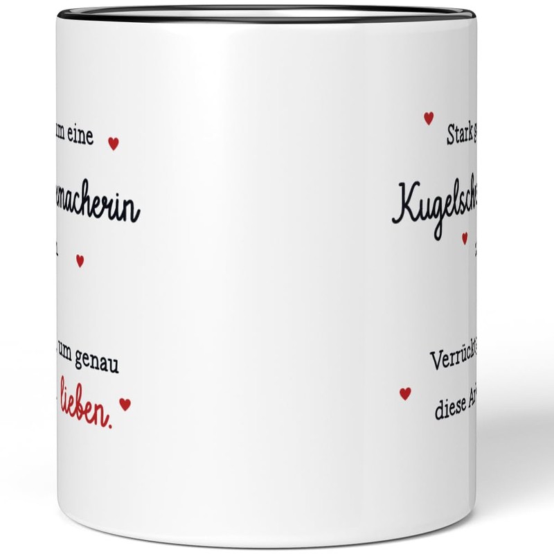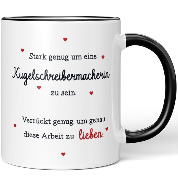 - JUNIWORDS Keramiktasse Stark genug um eine Kugelschreibermacherin zu sein. Verrückt genug, um genau diese Arbeit zu lieben mit farbigen Henkel & Tassenrand in der von Ihnen gewählten Farbe