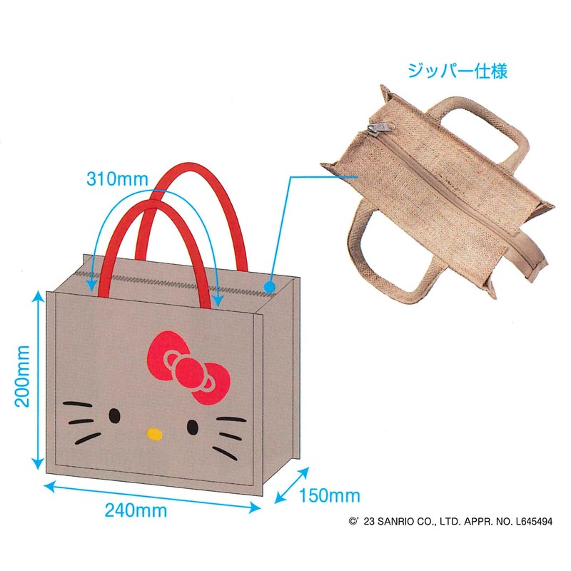 JUNKADO Sanrio Zipper Jute Bag S Face with Name Tag My Melody