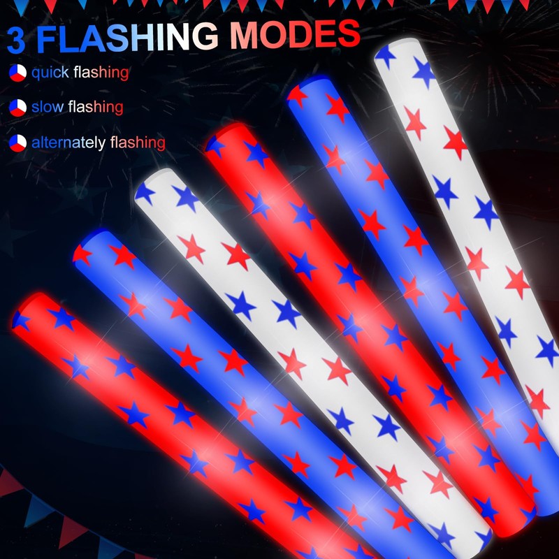 - Reliable Material for Long Lasting: the 4th of July LED foam sticks are made of quality pearl cotton foam material in bulk, which is strong and reusable, not easy to break or deform, which can serve you for a long time